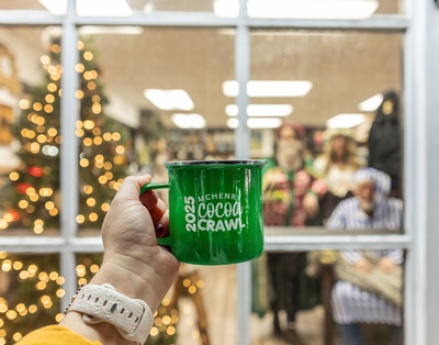 Each stop will have either a sample of hot cocoa, holiday beverage, or a small seasonal treat for each registered participant (while supplies last). Only $10 per person, which includes a commemorative 2025 mug!