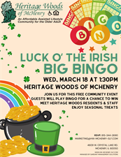 Join us for this free community event at Heritage Woods-McHenry! Guests will play for a chance to win, meet LuLu the Leprechaun and enjoy seasonal treats. Please RSVP 815-344-2690.