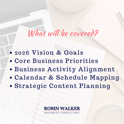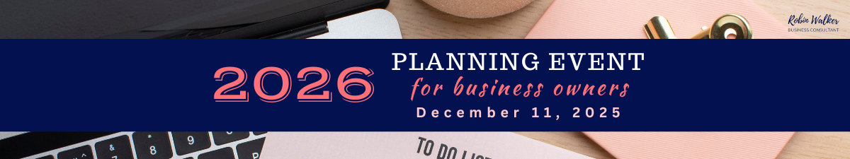 Join us on December 11th for a planning event with Business Consultant, Robin Walker. Robin will be guiding you through a strategic planning process to get your 2026 goals, calendar, and action steps ready for a prosperous year in business.