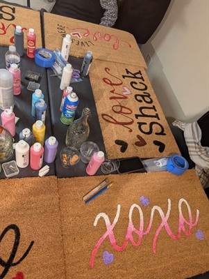 • Creative Fun: Paint and personalize your doormat with festive stencils