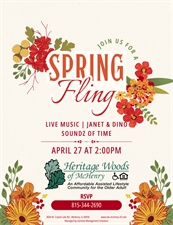 Join us for live music with Janet & Dino of Soundz of Time at Heritage Woods of McHenry. Hosted on Monday, April 27, this live event is free and open to the public.