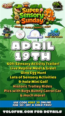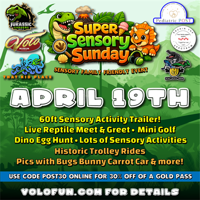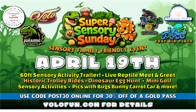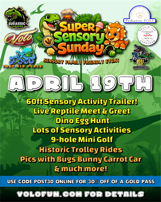 Visit https://volofun.com/event/super-sensory-sunday-at-jurassic-gardens/ for details!